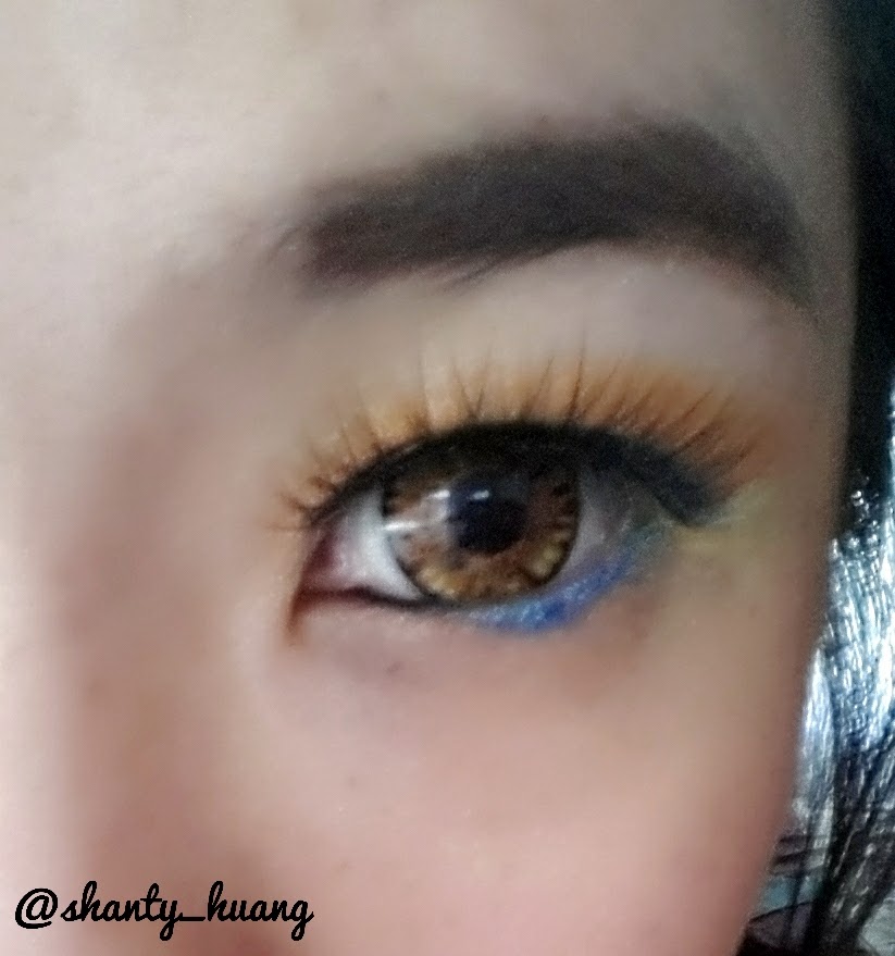 bermain warna biru, memadukan eyeliner biru tua dengan eyeshadow biru aqua,